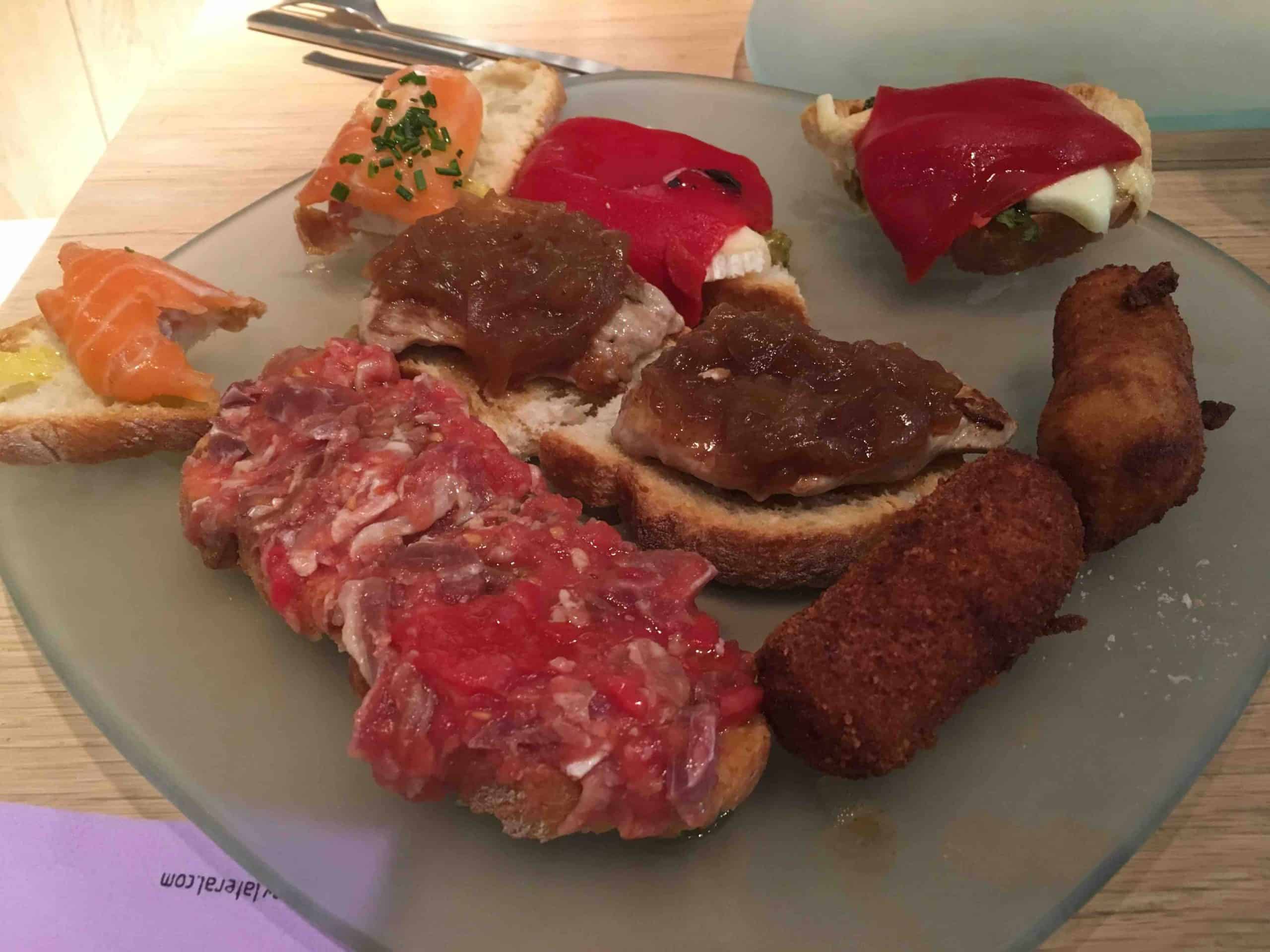 tapas spain fish foodtapas spain layer foodUpon arrival in Madrid, you will meet your local tour escort and transfer to your hotel located in the heart of Madrid’s historic center. Tonight you will walk through the Plaza Mayor, and enjoy a selection of Tapas and wine. Overnight in Madrid with Dinner.